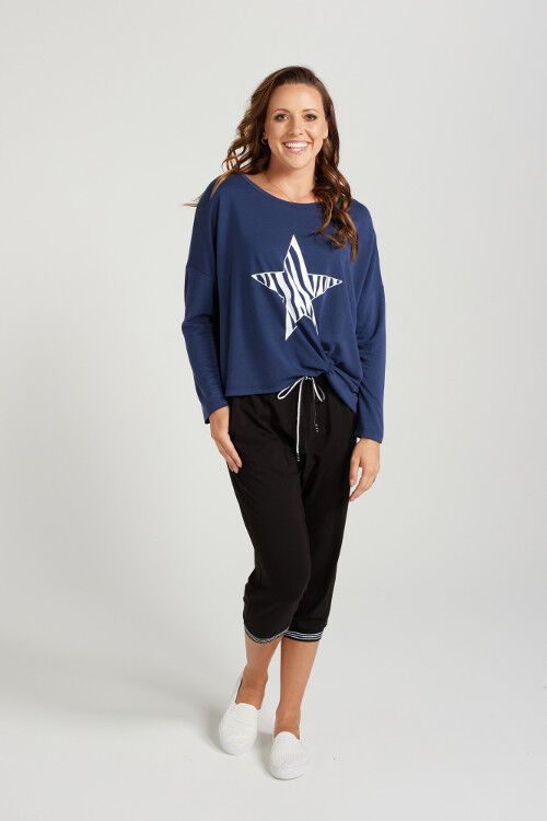 The perfect relax pant. Beautiful modal blended fabric. Contrast draw string. Contrast rib cuff. 46% modal, 45% cotton, 9% spandex