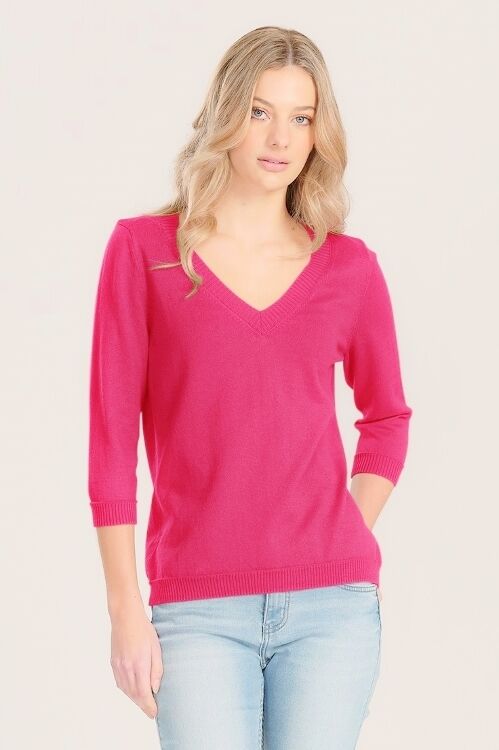 A classic to have in the wardrobe for years. V neck and 3/4 sleeves with rib bands. Made in New Zealand. 100% combed cotton