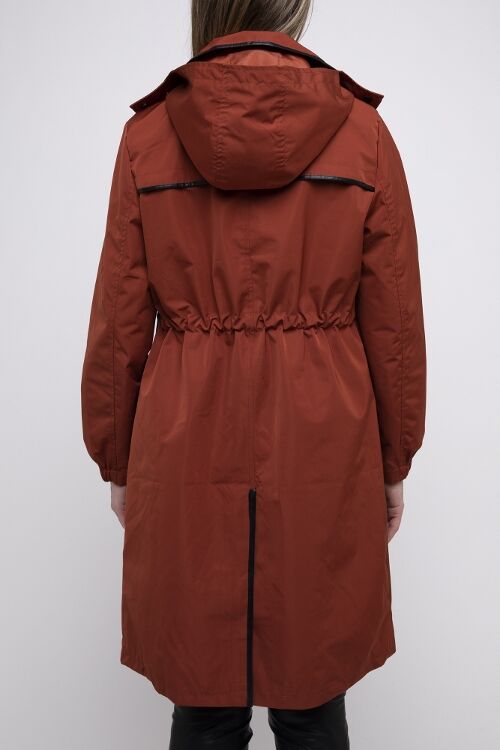 Long anorak style jacket with drawstring waist and pocket. 100% polyester