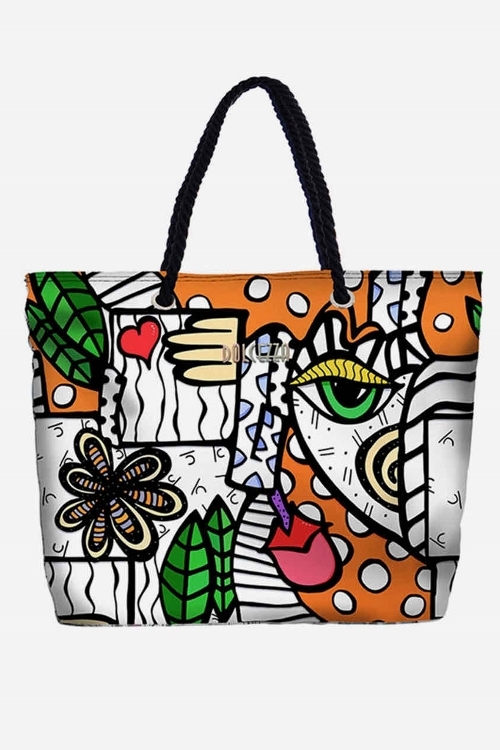 Simply Art by Dolcezza - a large fabric bag in a print from the painting "Hold my Hand” by artist Tom Fedro. Top zip closure, rope handles - great for shopping, beach or travel. Measurements: 18" x 13" x 5"