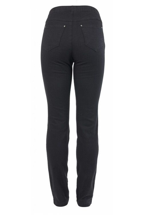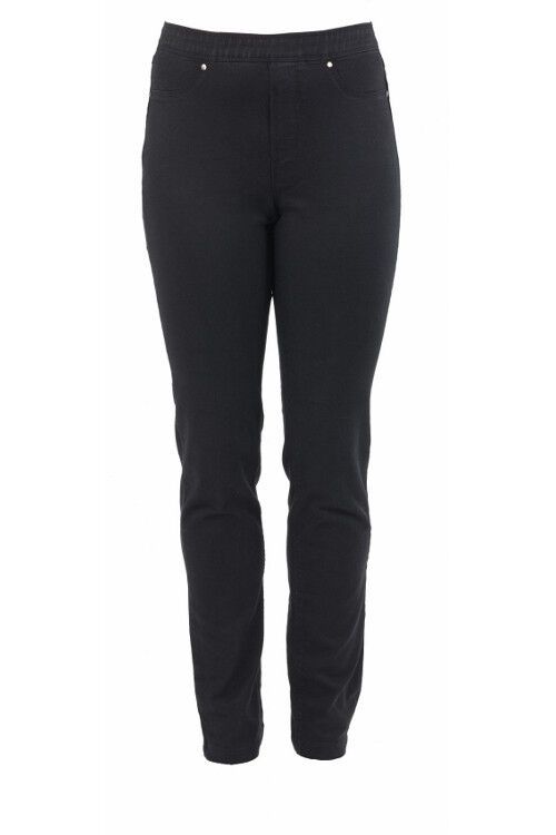 A tried and true MacJays staple.  Soft lightweight denim in a convenient pullon slim leg style with a waistband that doesn't roll.  65% cotton, 35% polyester, 5% elastane