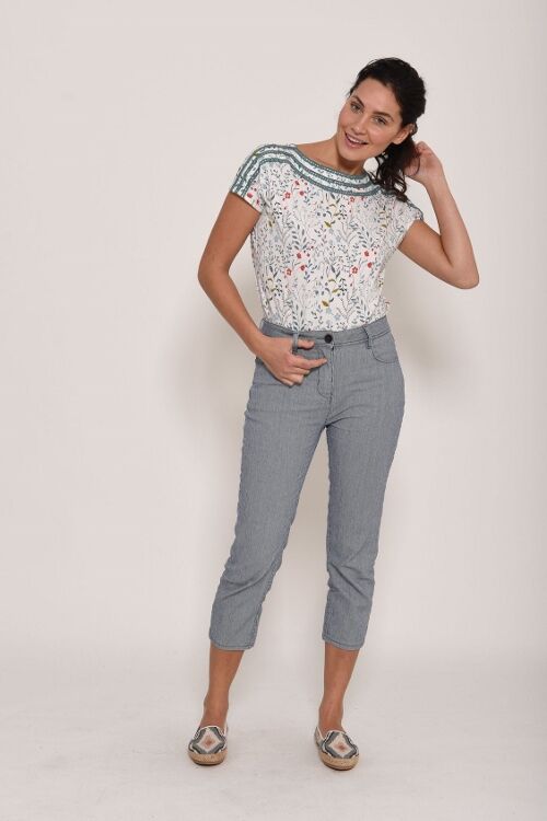 Let your everyday wardrobe off the lead with these striped capri trousers which are a slightly cropped fit for a summer feel. Both comfortable and stretchy, they will make a great addition to your summer wardrobe. 70% Cotton, 28% Polyester 2% Elastane