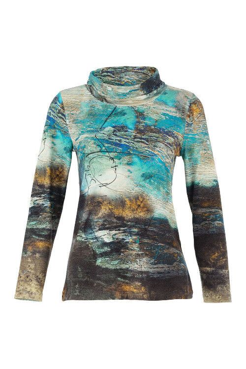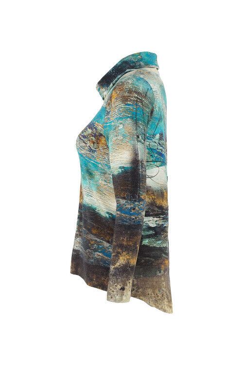 A colourful "Simply Art' print called 'Life's Too Short' by the artist Lynne Godima-Orme. All-over print top with soft cowl neck, feature faux buttoning down the back, long sleeves and gentle A-line shaping 96% viscose, 4% elastane Note: Dolcezza sizes tend to run small rather than larger.