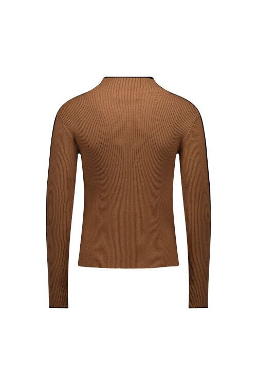 • Mock neckline with contrast piping along edge