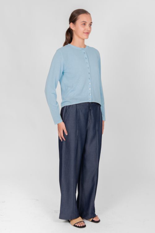Elevate your spring layering game with the Lucia Cardigan, expertly crafted from 100% high twisted cotton for a soft, durable, and breathable finish. This lightweight cardigan features a sleek round neckline and a button-down front with delicate tone-on-tone buttons for a minimal yet polished look.  100% high twist cotton