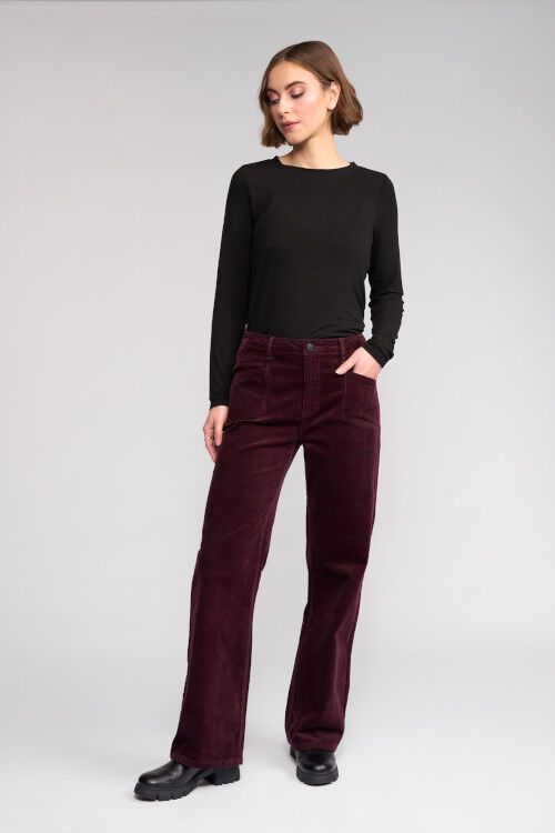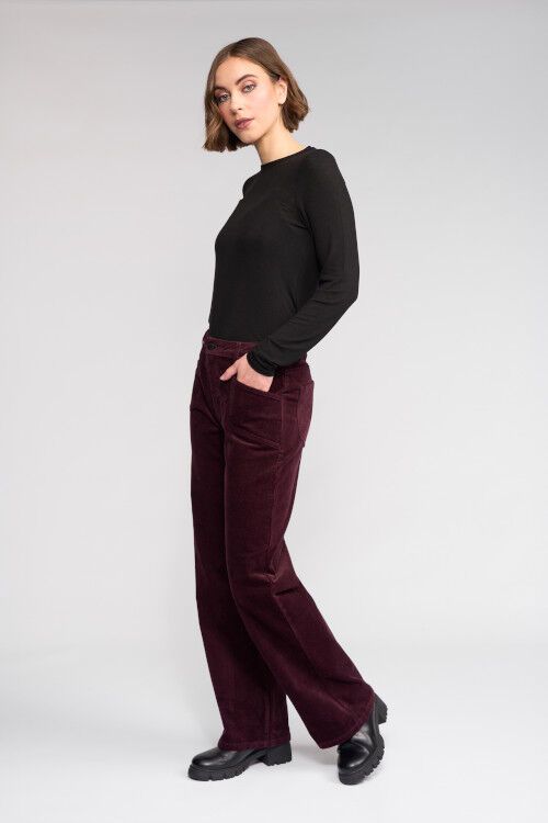 Full-length wide-leg pant in corduroy. Angled front patch pockets and back patch pockets. Waistband with beltloops and zip fly closure. 98% cotton, 2% elastane