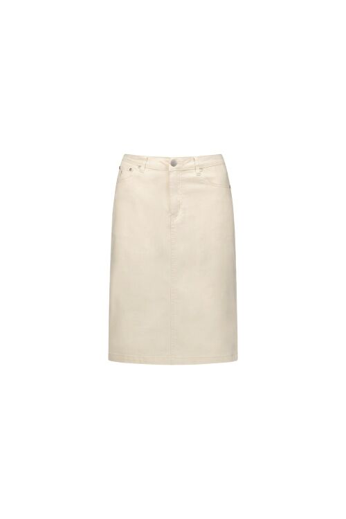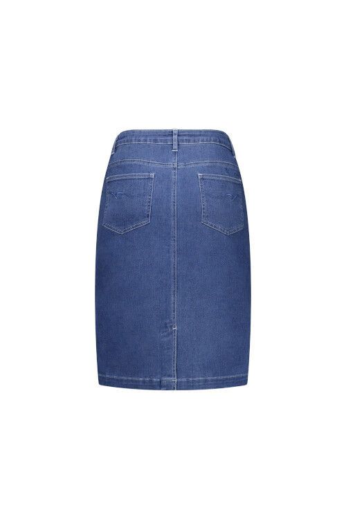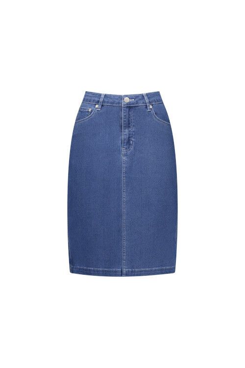 A classic denim skirt made from a stretch denim fabric for a comfortable fit. Designed with a zip fly, front and back pockets, and a back vent for ease of movement.  97% cotton, 3% elastane