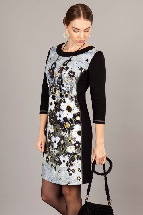 Simply Art by Dolcezza “I am Taking You Home tonight” dress – panelled dress featuring floral design painting by Vigo (artist from Quebec, Canada), slightly flared, 3/4 sleeves, back zipper, very flattering fit, stretchy. Cotton elastane
