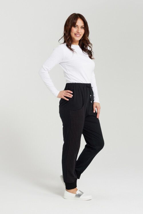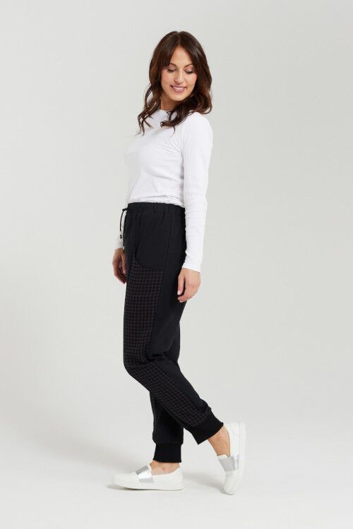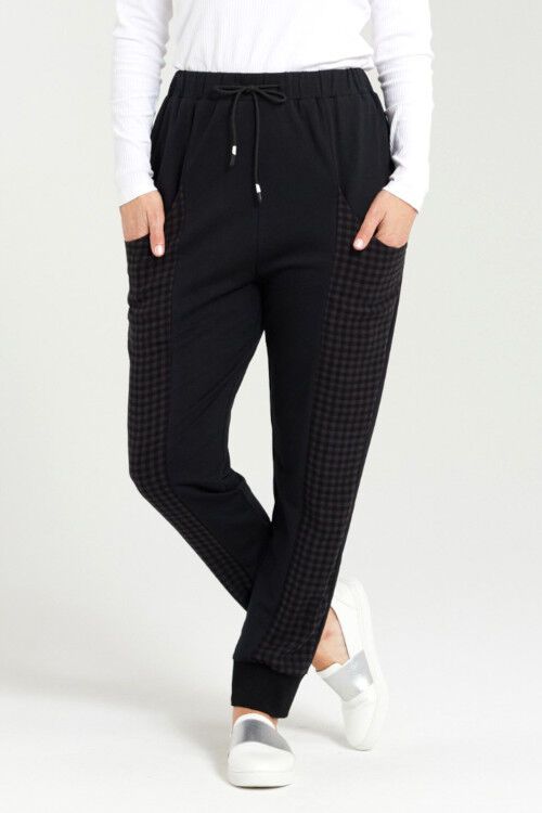 Stay comfy in these checkered sweatpants. Featuring an elasticated waistband, convenient drop pocket and chic fabric panel, these pants are perfect for a relaxed, but stylish look. Fabric 1: 95% cotton, 5% spandex; Fabric 2: 100% cotton