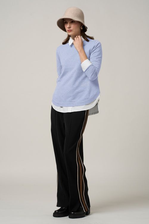 Soft cashmere, cotton blend crew neck sweater. With rounded hem and side splits. Perfect for everyday wear. 95% cotton, 5% cashmere
