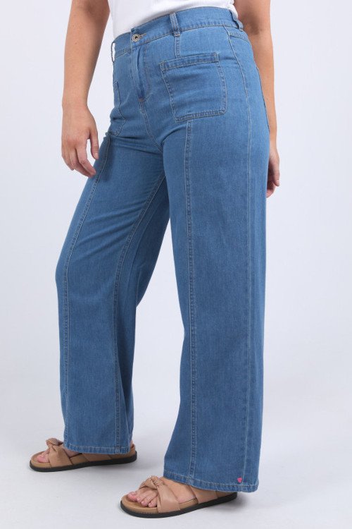 The new Fee Jean is soon to be a favourite denim jean. Featuring a flattering front leg seam these ultra comfortable jeans have a flat front and elastic back waist making them the ideal jeans to tuck in your new top or wear something over them. Self fabric front patch pockets and front leg panel detail.