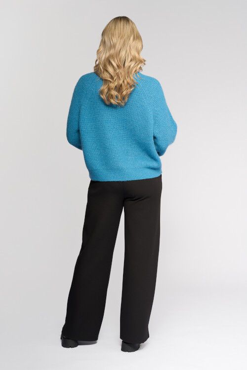 Oversized knit sweater crafted from a soft blend including mohair and wool for warmth and texture. Featuring raglan balloon sleeves and a round neckline, this sweater offers a relaxed, statement making silhouette with a cosy, luxurious feel. 40% nylon, 25% mohair, 20% wool, 15% acrylic