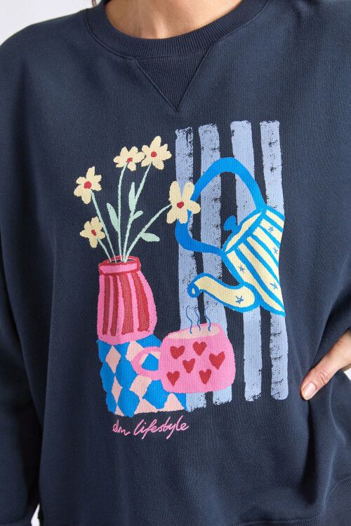 The Elm Fill Your Cup Crew features exclusive Elm artwork for a fun, feel-good everyday layer. Designed in a relaxed fit with side splits and crafted from cotton unbrushed fleece, it’s perfect for casual comfort. Style with denim or relaxed trackpants for laid-back days.  100% cotton unbrushed fleece