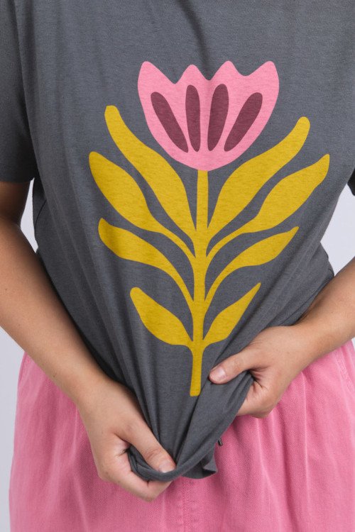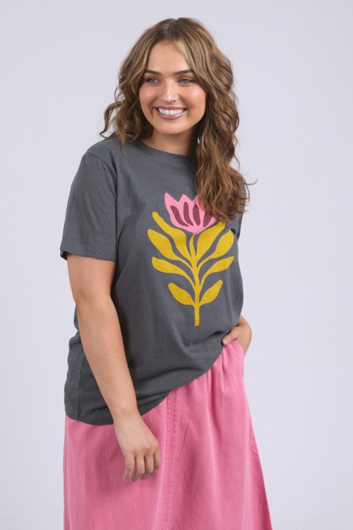Featuring an exclusive design created by the clever Elm team, the Fiore Tee is a perfect colour pop for any outfit. Washed effect and regular fit.  Cotton linen jersey.