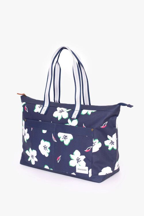 Take the stress out of going away with this bold floral print large weekender bag. With plenty of space to fit your outfits of choice in its main zipped compartment, it also features wide carry handles, two front pockets, and a further zipped compartment inside. Material : Shell: 100% Cotton Pvc Coasting, Lining: 100% Polyester. Width (cm): 62, Height (cm): 37, Depth (cm): 18