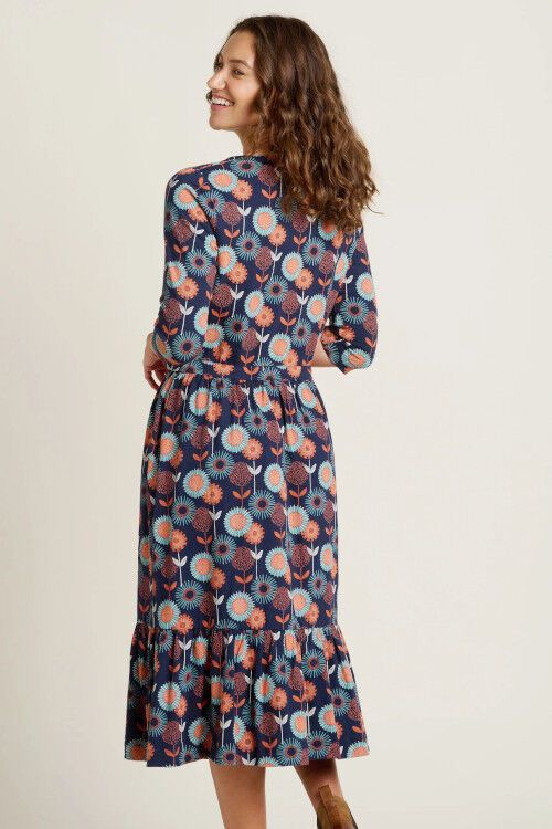 Floral jersey midi dresses are wardrobe staples that make getting ready easy. The Freya Midi Dress showcases bold florals you can wear all year round. Featuring three-quarter sleeves, half-button placket, drawstring at the waist and pockets, this midi dress is versatile and practical. Wear as is with trainers or boots. Designed in Dorset, UK. 100% cotton