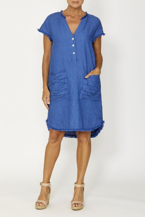 Fringe trim linen dress