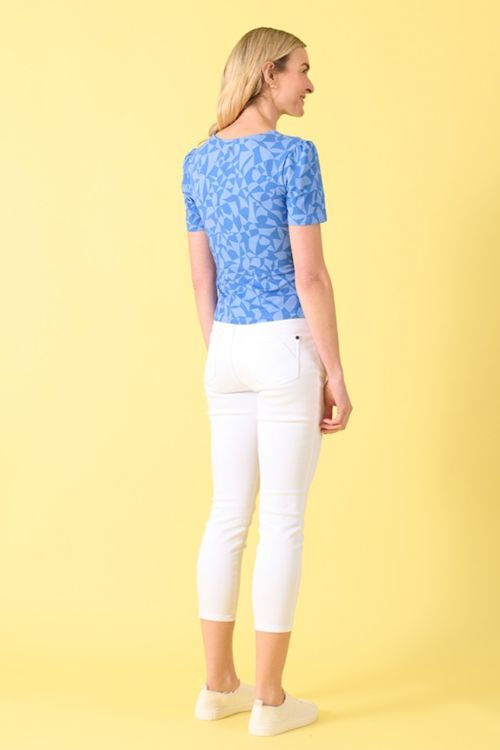 Wrap front top in a lovely small print fabric. V neck and short sleeves.