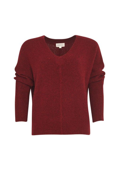 Deep-V batwing sweater in a soft fluffy marle knit. 56% acrylic, 17% polyester, 14% nylon, 8% wool, 2% spandex