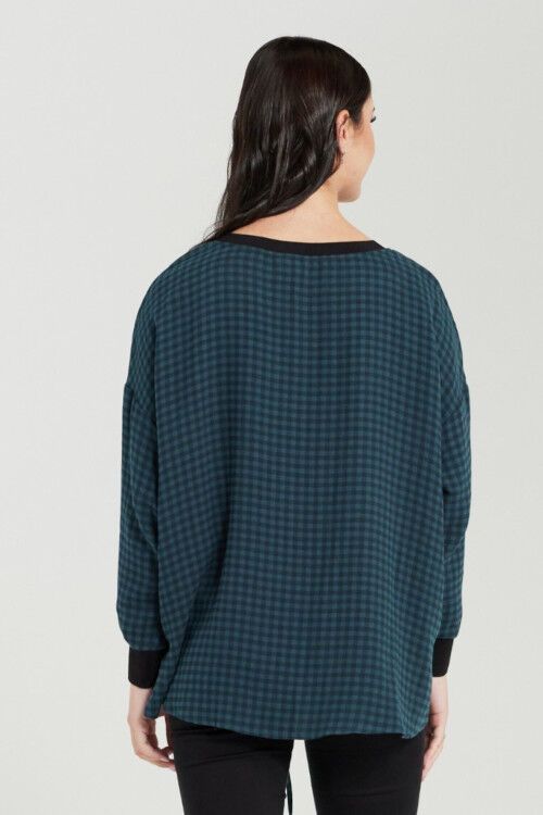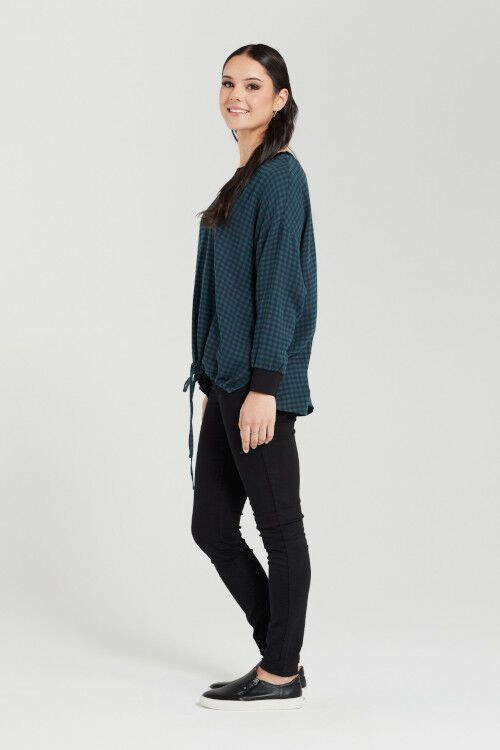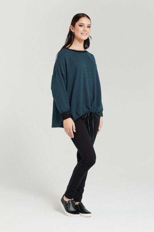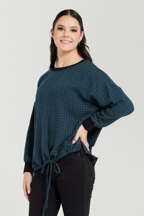 Effortlessly casual, this relaxed top features a checked print, ribbed neckline and cuffs, with a drawstring hemline for a touch of laid-back style. 100% cotton