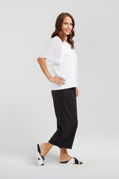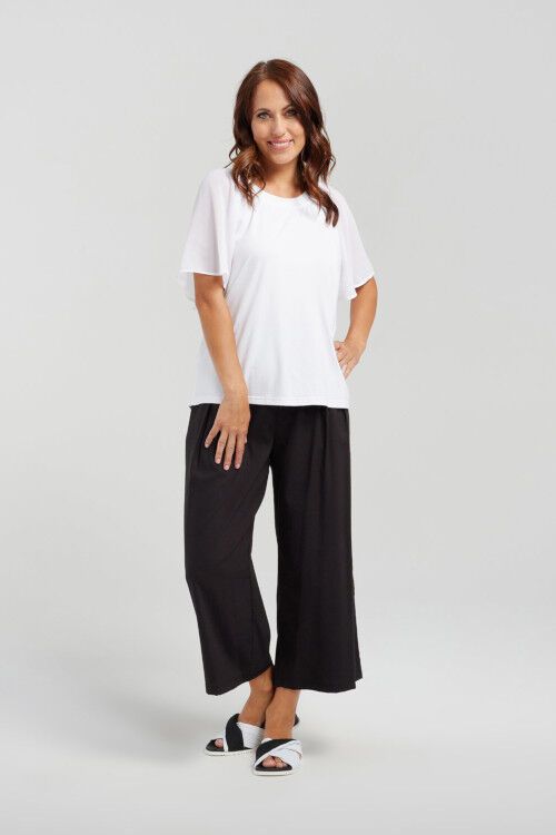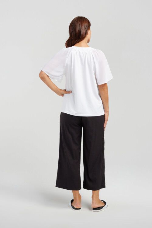 Stay cool during those hot summer days with this top that offers short butterfly sleeves, a relaxed fit and a round neckline. It's easy to style with your favourite pants or skirt.  Fabric 1: 46% cotton, 46% modal, 8% spandex;  Fabric 2: 100% polyester