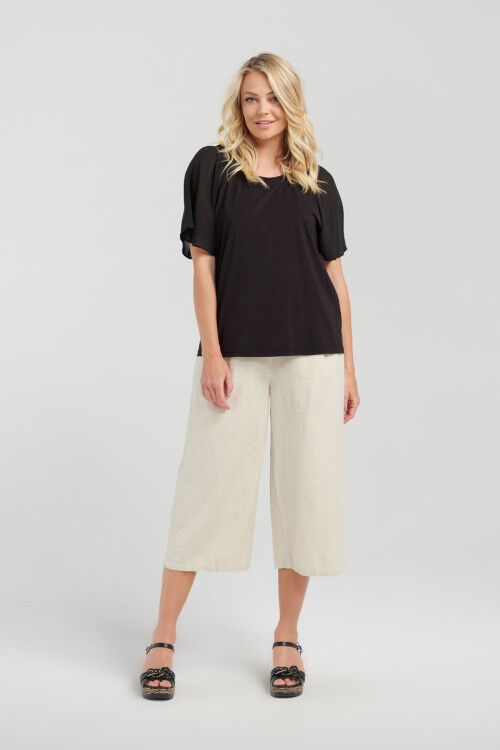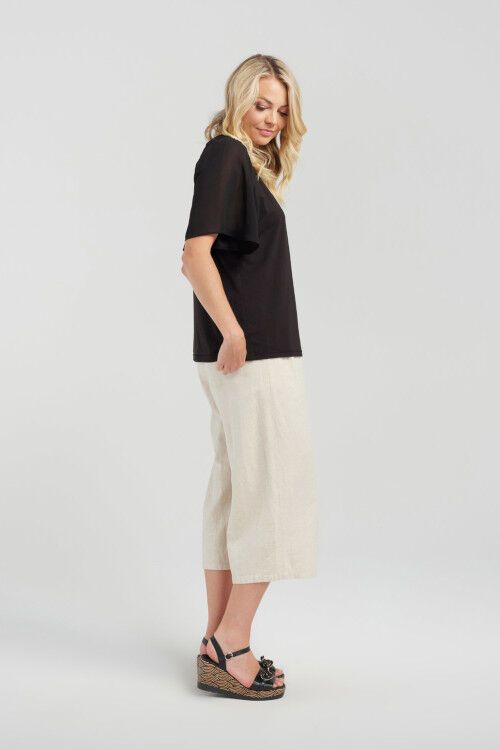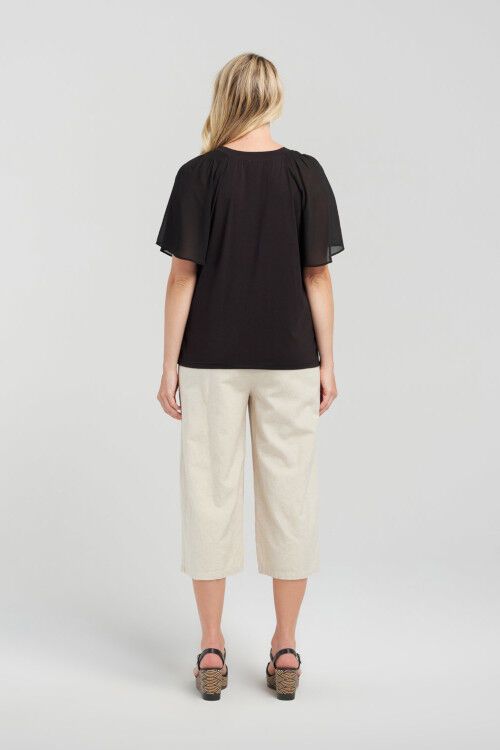 Stay cool during those hot summer days with this top that offers short butterfly sleeves, a relaxed fit and a round neckline. It's easy to style with your favourite pants or skirt.  Fabric 1: 46% cotton, 46% modal, 8% spandex;  Fabric 2: 100% polyester