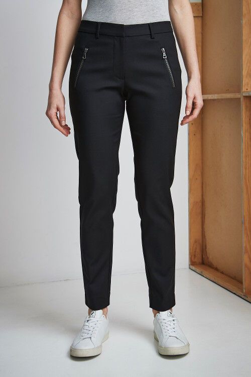 Suit it up with "Jolie pant", sitting mid to high - waisted with centre back elastic panel,  slim leg & chunky exposed zipped pockets, a pant for every occasion. 60% cotton, 36% nylon, 4% elastane