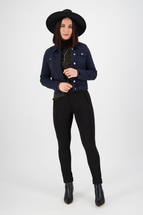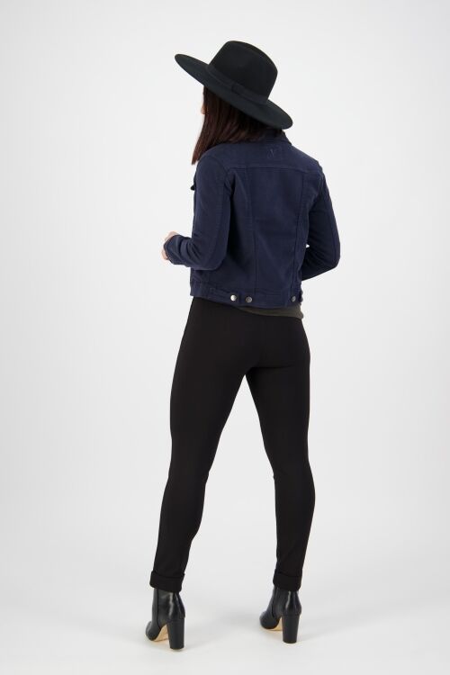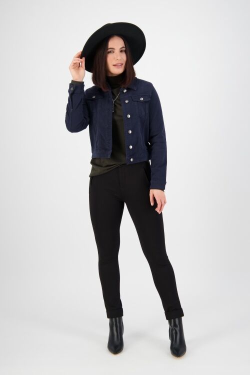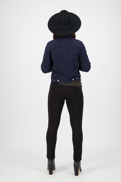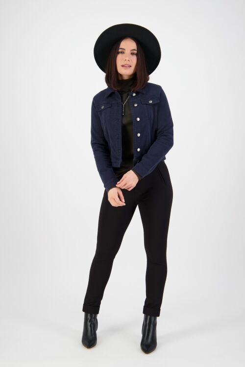 Denim style jean jacket that is soft and stretchy. 50% cotton, 47% tencel, 3% elastane