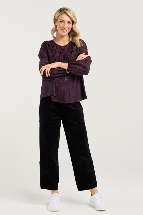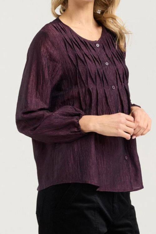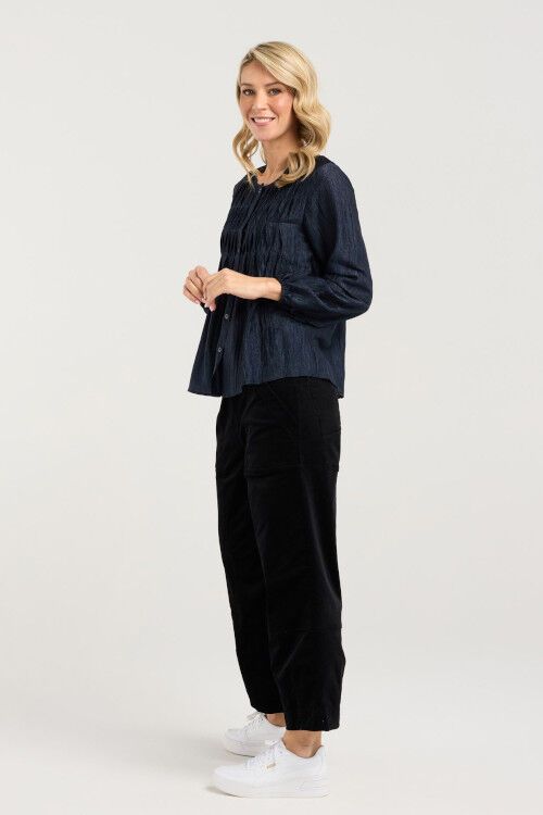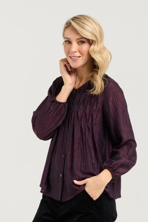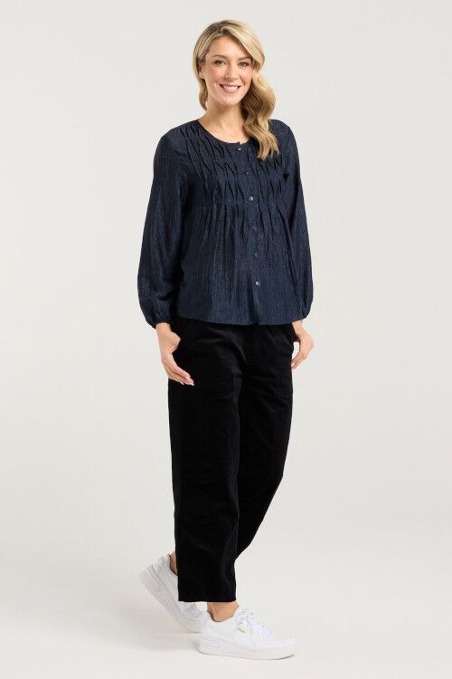 The Leah Zig Zag Pleat Top turns simple dressing into an effortless moment, think soft zigzag pleats, relaxed drape and a little bit of shimmer giving a feminine touch to your daily ensemble. Made from an eco-friendly Naia blend fabric, you can feel great knowing you're wearing a sustainable fabric whilst looking stylish and feeling comfortable all day. Features: Zig Zag pleat feature on front yoke; Button through closure; Elasticated wristbands. Model is 179cms tall and is wearing a size 8.  83% Naia (cellulose acetate fibre), 17% nylon