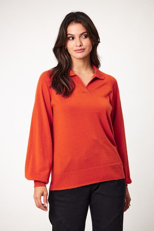 Merino collared jumper. Rib cuffs with puffed sleeve. Rib hem band. 100% merino wool