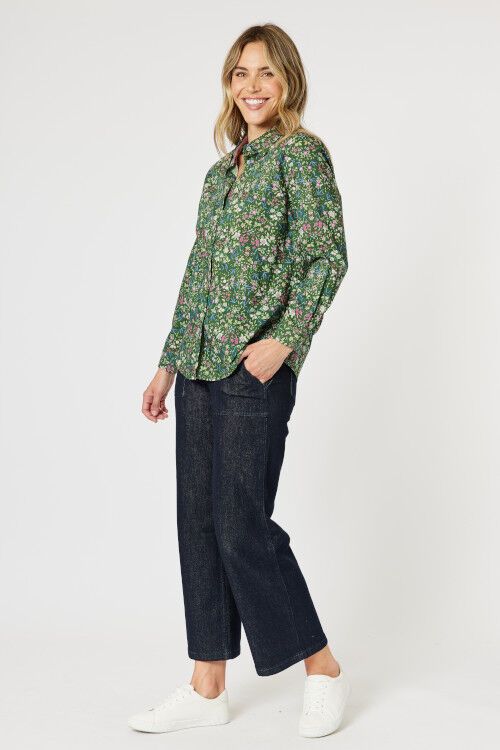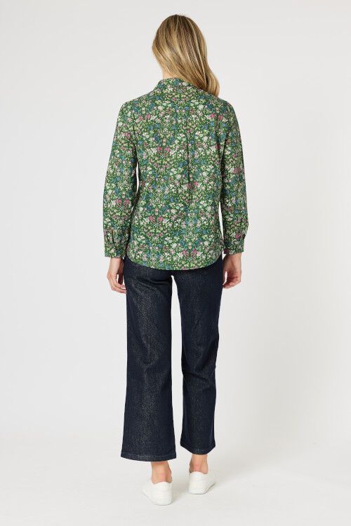 A cotton shirt in a small print is always a winner! This lovely Liberty print has an intricate pink and blue floral pattern against a khaki background. Complementary trim fabrics take it up a notch from a basic shirt. 100% cotton