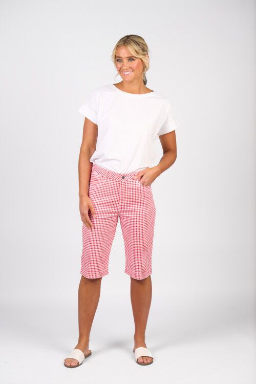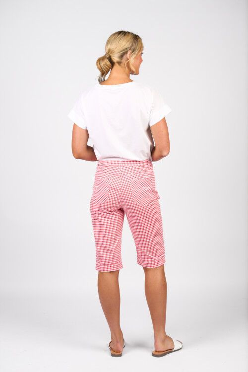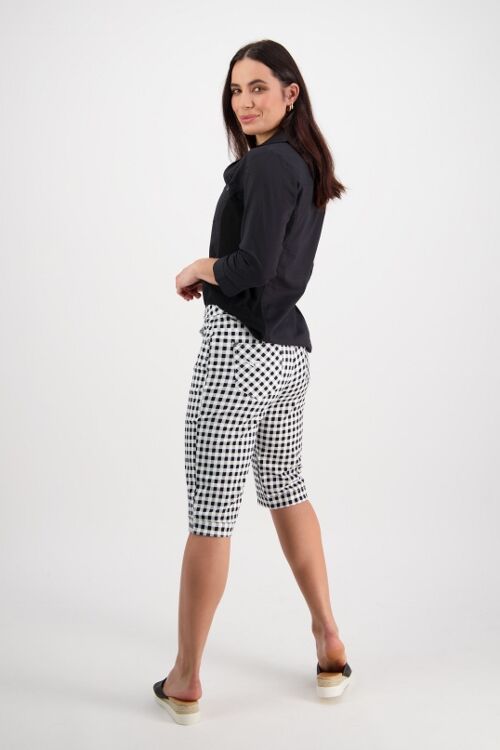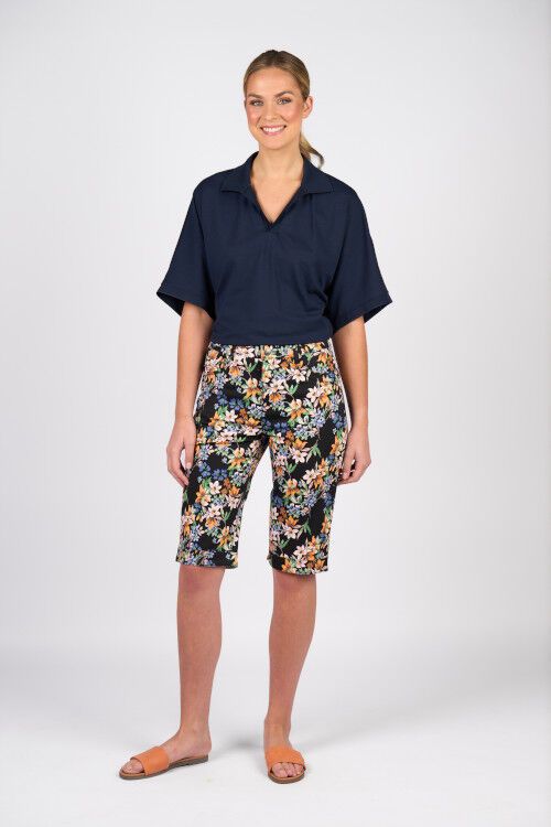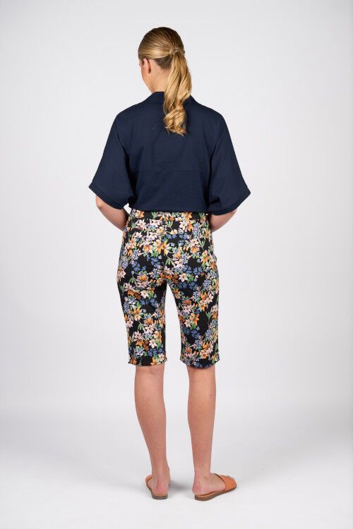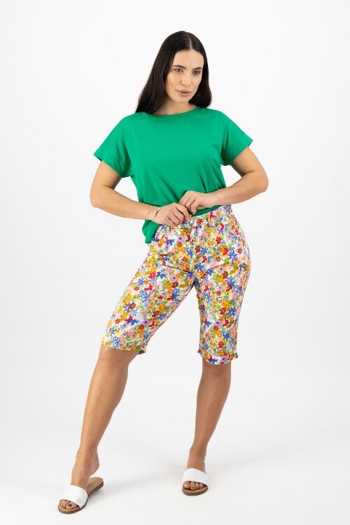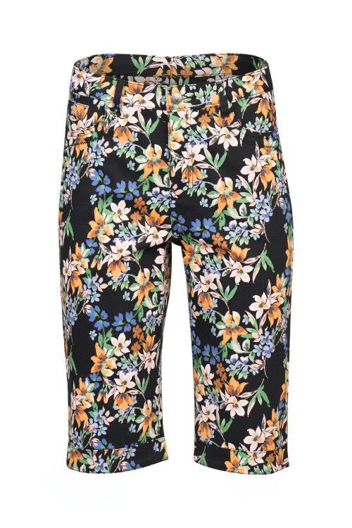 Printed lightweight short with zip front and pockets. Straight leg and cuffed hems. 97% cotton, 3% elastane