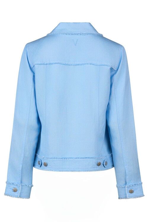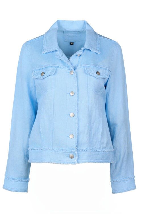 This button-up jacket is made from a linen-viscose blend and features frayed seam detailing for a textured look. Designed in a classic denim jacket shape with metal jean buttons and a relaxed fit, it’s an easy layering piece for everyday style. Two chest pockets with flap and button fastening. Panelled sleeve with cuff, placket and button fastening. Adjustable button tabs on back waist hem.   55% linen, 45% viscose