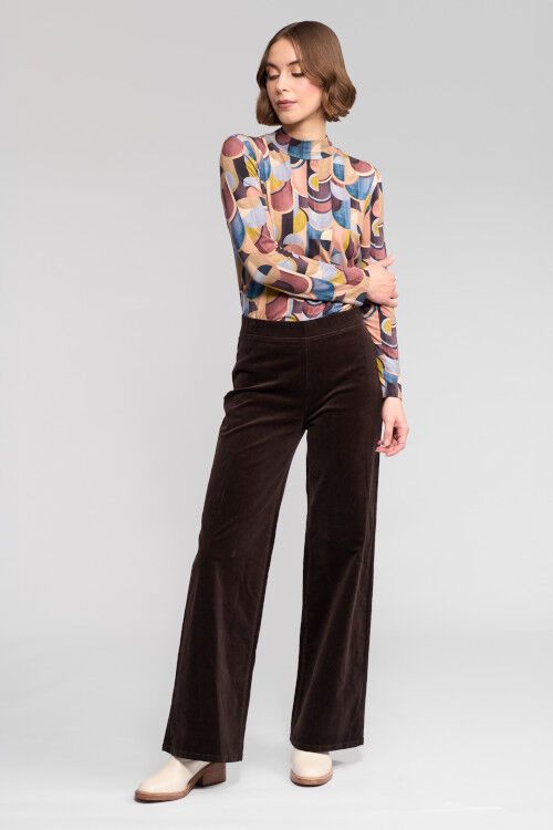 Full-length wide-leg pant in stretch pinwale cord. The pull-on style and elastic waistband offer comfort and ease, with a simple, relaxed silhouette. 97% cotton, 3% elastane