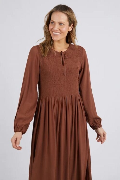 The ideal dress up or down dress from Elm. The Lottie Dress is made in soft and drapey viscose crepe and features a shirred bodice and long sleeves with elasticated cuffs and pockets.
