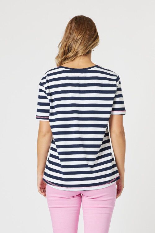• The flattering V-neckline, short sleeves, and contrast stitch detailing make it a standout everyday piece.