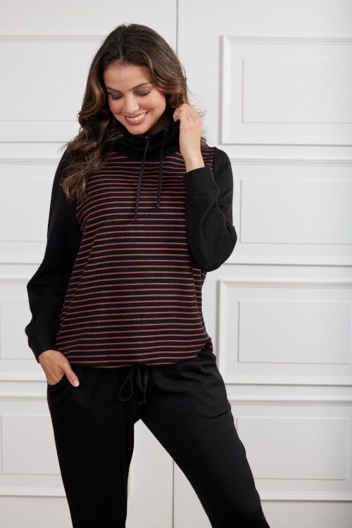 Relaxed fit roll neck Merino Top with drawcord at neck and at hem. Long sleeves. 100% merino wool