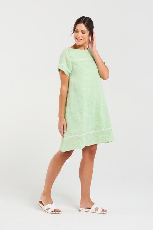 Discover the timeless elegance of Blackstone's Martine Ladder Trim Dress, a piece where comfort meets sophistication. Crafted from 100% premium linen, this dress promises exceptional breathability with a soft feel, perfect for those warm, sunny days. Its delicate ladder trim detail adds a touch of refined intricacy, making it an ideal choice for both casual outings and more formal gatherings. Perfectly paired with sandals, heels or sneakers depending on the occasion. Embrace a blend of style and simplicity with this versatile addition to your wardrobe.