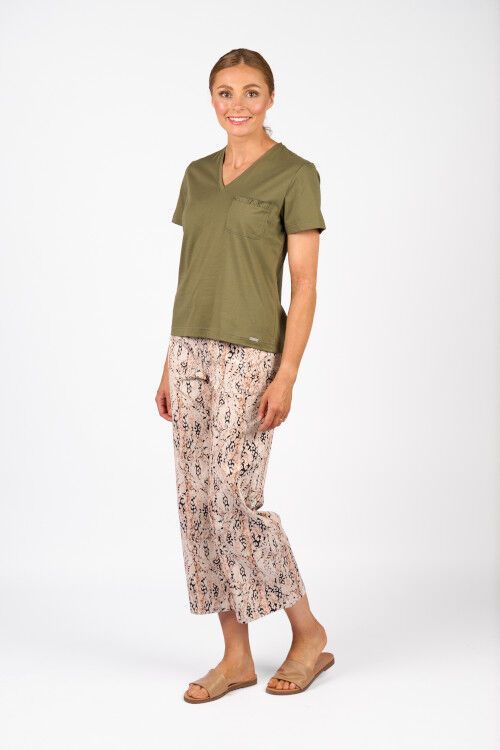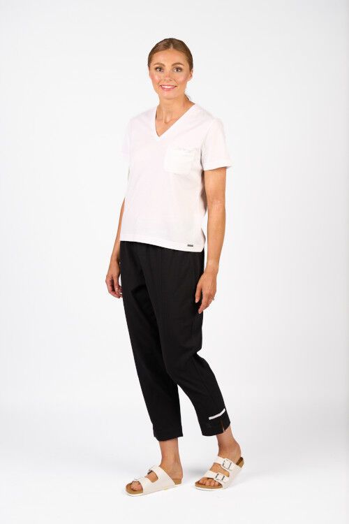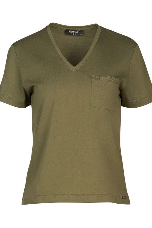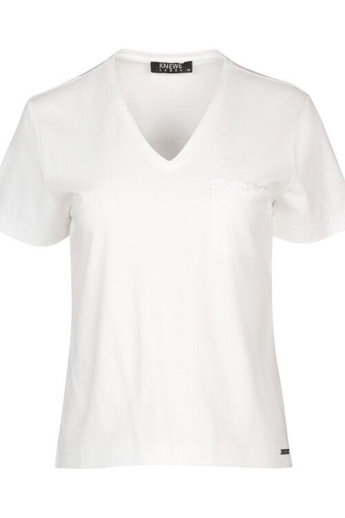 The Mila Tee updates a classic short sleeve V-neck with a delicate frill-trimmed patch pocket. Made from soft, lightweight cotton jersey, it offers a relaxed fit for effortless comfort and everyday style.  100% cotton