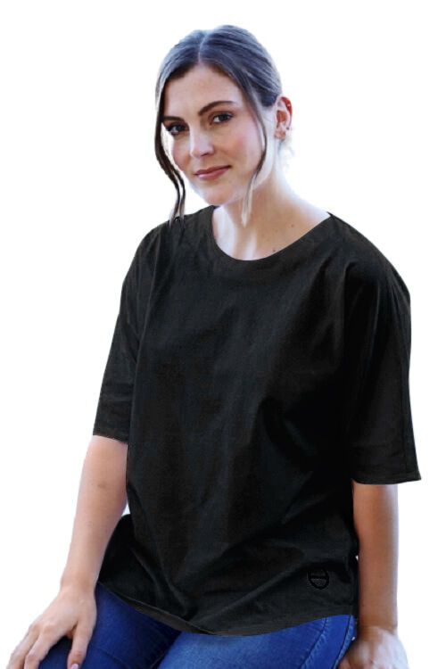 Relaxed fit tee with elbow length short sleeve.  Quality 165gm Pima cotton