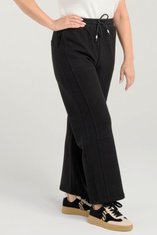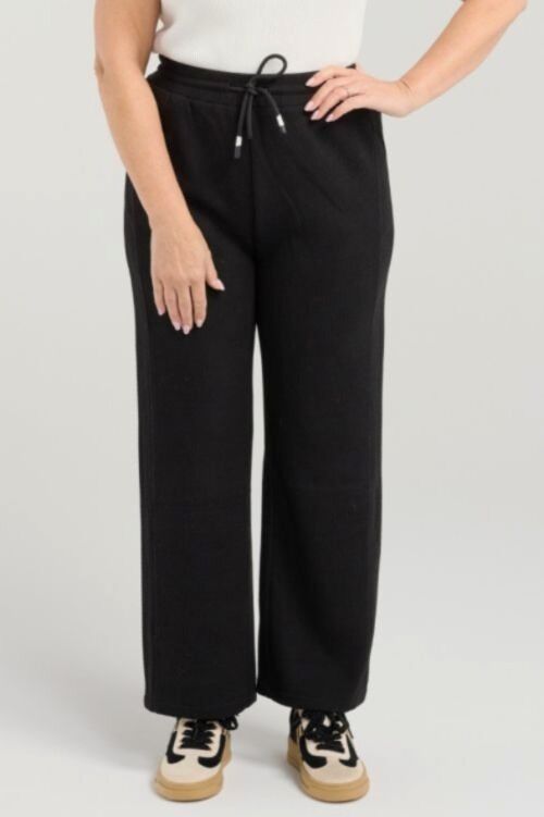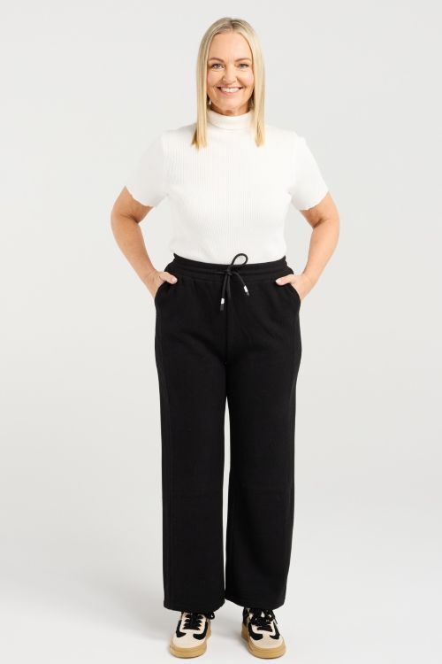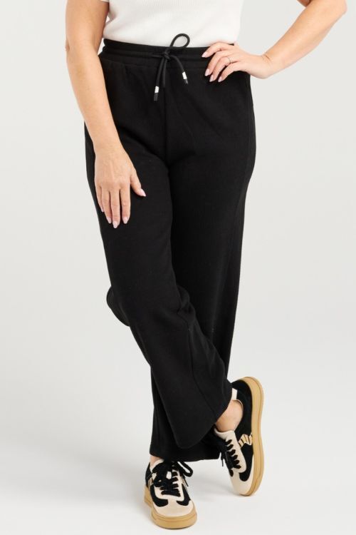 These soft black pants offer a relaxed fit for effortless comfort, featuring an elasticated waist with a drawstring for a perfect, adjustable fit. Versatile and cozy, they’re ideal for both casual days and stylish layering in cooler months. 38% rayon, 35% nylon, 23% polyester, 4% spandex
