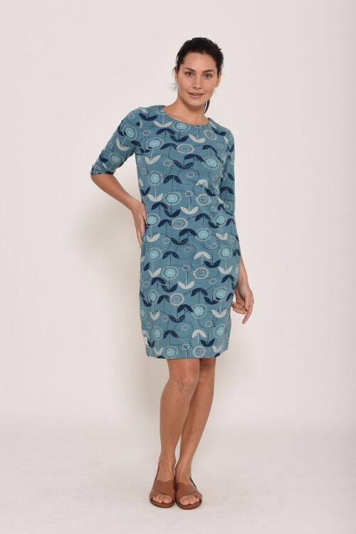 There are lots of reasons to love this dress! With a bold pattern print, this over-the-knee dress is flexible and versatile. It's made from a soft, stretchy cotton with comfort in mind for all day wear. 95% cotton, 5% elastane