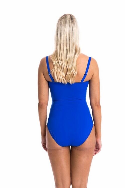 This popular style features molded cup with silicon band for bust support, removable and adjustable straps with flattering ruching and power netting for added support and tummy toning. Nylon/elastane