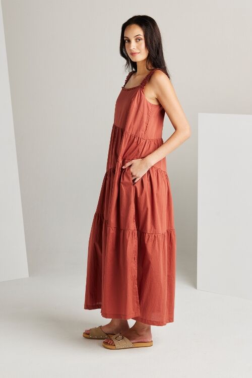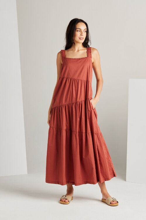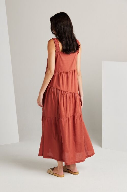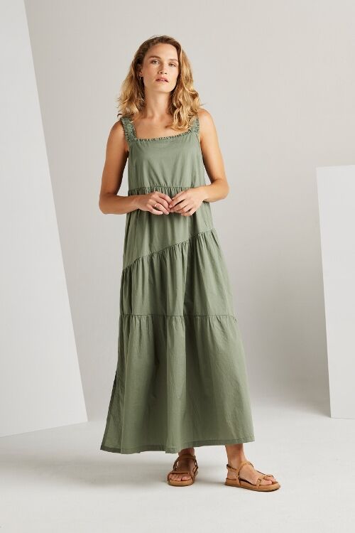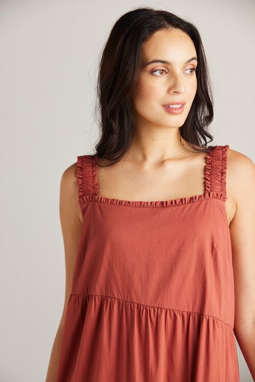 The Paige dress is an expression of sophistication and femininity. Crafted from a lightweight cotton voile, this dress features asymmetric panels and delicate gathers across the skirt, resulting in a flattering A-line silhouette. Wide elasticated shoulder straps and an enchanting frill detail on the neckline, add a touch of allure to this graceful and timeless piece.  100% cotton