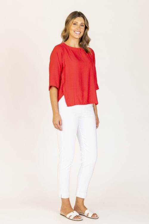 This is a lovely top to team with wide leg pants for a casual summer vibe. The clever panelling forms two side splits and the sleeve is the much favoured elbow length. Cotton/viscose