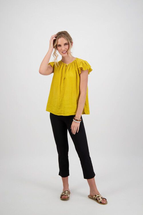 A popular style in the fabulous lightweight French Paris fabric that MacJays are renowned for. This 7/8 capri has a deep hem with split and little stud detail. Comfortable elastic waist that sits nice and flat, false fly detail and the all important pockets! 70% cotton, 26% polyamide, 4% elastane