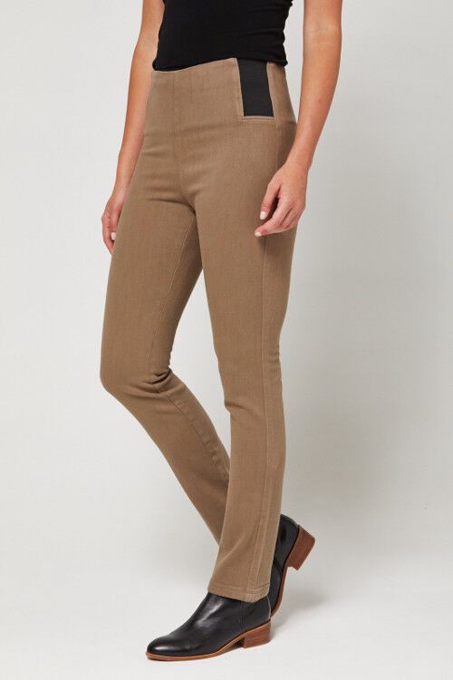 MERINO DENIM™ is softer and warmer than regular denim. Featuring an innovative elastic waist that's incredibly comfortable with less bulk at the waist than regular jeans (no pockets or fly). The leg width is perfectly balanced, a slim neat leg that's not tight. The waist height is considered high-rise and finishes over the hips at the belly button. Woven from 20% merino wool, 79% cotton and 1% elastane. Gentle machine wash.