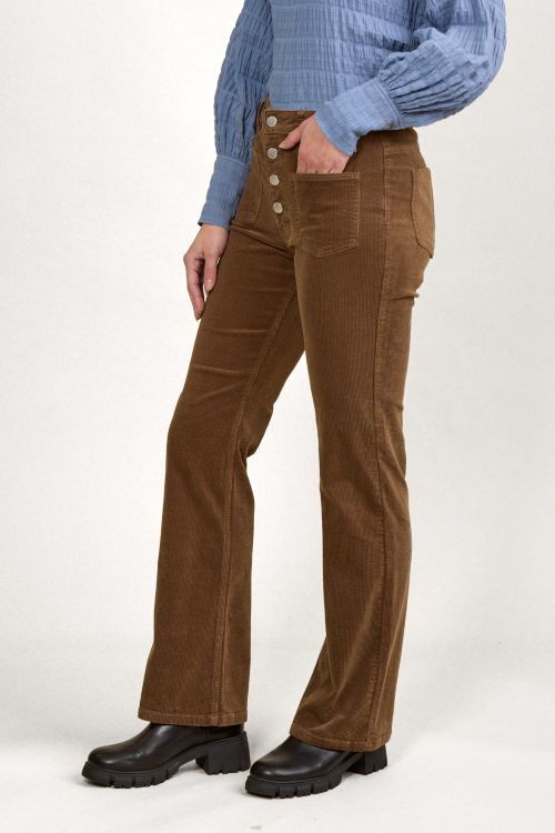 Bootcut full length pant • Made from stretch cord fabric for the perfect fit • Metal 'KNEWE' logo jean button fly • Waistband features 4 front beltloops and 3 back beltloops • Front patch pockets • Back patch pockets with seam detail • Leather 'KNEWE' brand patch on wearers back right-hand side waistband.