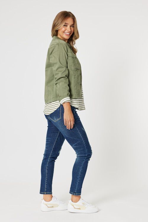 Everyone needs a denim jacket! This one has collar, pockets and great seam detailing giving a nice tailored look without comprising on comfort. Cotton/elastane