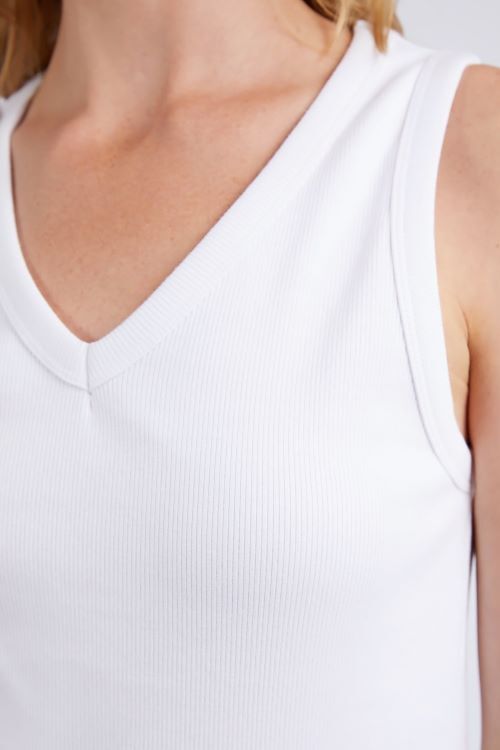 The staple rib tank top is now available with a Vee neckline. Use it as a layering piece or wear it with shorts, jeans, skirts or wide leg linen pants. Featuring a Vee neckline, bra friendly straps and a shorter length - perfect for tucking in or leaving out.  2 x 2 rib.  95% cotton, 5% elastane